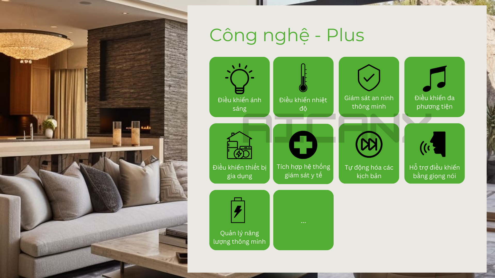 Hỗ trợ điều khiển bằng giọng nói: Gói giải pháp "Plus" cho phép bạn điều khiển các thiết bị trong nhà của bạn bằng giọng nói thông qua các trợ lý ảo như Google Assistant hoặc Amazon Alexa. Bạn có thể điều khiển các thiết bị, kiểm soát ánh sáng và nhiệt độ, và thực hiện các tác vụ khác chỉ bằng giọng nói, giúp tăng cường sự tiện lợi và dễ dàng trong việc sử dụng.